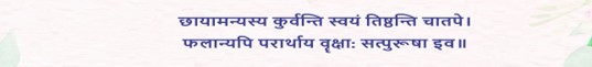 This beautiful and meaningful Sanskrit quote states that trees give us everything - from shade to fruits; they stand in the hot Sun, just like noble people who only give to others.